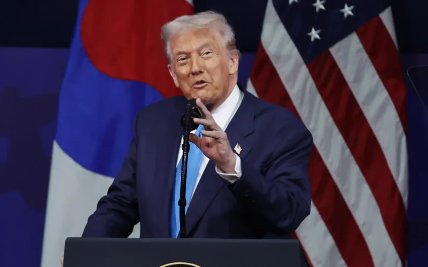 Presiden Amerika Syarikat Donald Trump berucap di Sidang Kemuncak Ketua Pegawai Eksekutif Kerjasama Ekonomi Asia-Pasifik 2025 di Gyeongju, Korea Selatan. (Gambar EPA Images)
