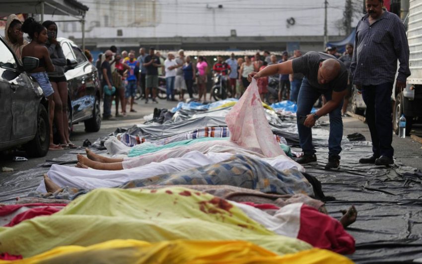 RIO DE JENAIRO: Residents of a Rio de Janeiro community lined up their dead in the street Wednesday after Brazil’s bloodiest police raid killed at least 119 people, spotlighting the city’s controversial war against drug gangs entrenched in poor neighbourhoods.