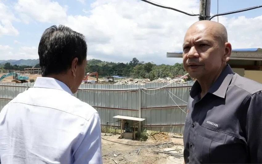 Armizan Mohd Ali mengadakan lawatan ke projek Loji Rawatan Air (LRA) Kogopon 2 di Papar pada Mei 2024 untuk memantau kelancarannya. (Gambar Bernama)