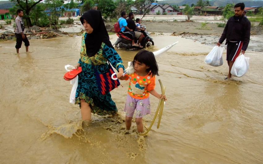 Residents carry their belongings as they wade through flood water in the Papua province. (EPA Images pic)