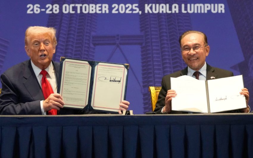 Perdana Menteri Anwar Ibrahim dan Presiden AS Donald Trump meterai perjanjian perdagangan dalam satu pertemuan di sela-sela Sidang Kemuncak Asean akhir bulan lepas. (Gambar AP)