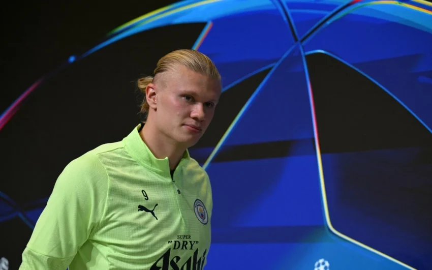 Manchester City’s Norwegian striker Erling Haaland arrives for a press conference at the Etihad Stadium in Manchester, north-west England. (AFP pic)