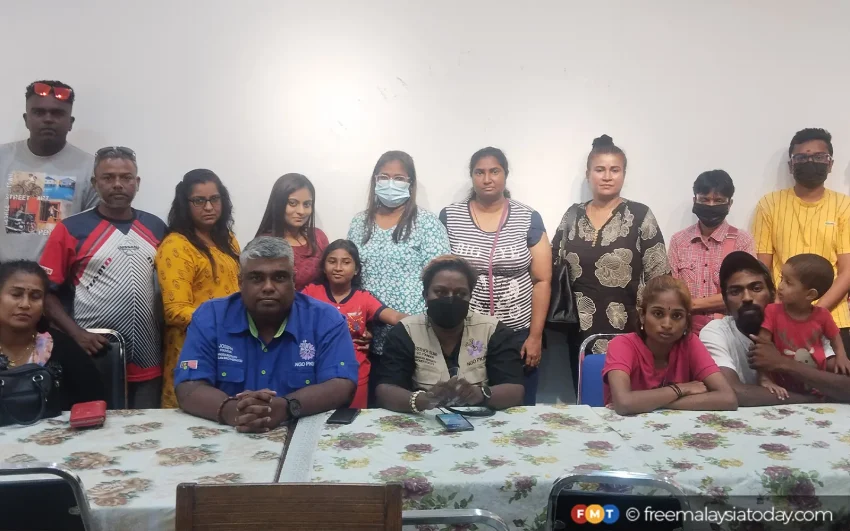 Pengasas PKIPN Joseph Prakash (duduk, tiga dari kiri) bersama peniaga Deepavali yang didakwa ditindas, pada sidang media di Shah Alam hari ini.