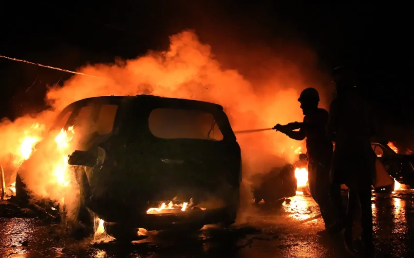At least six vehicles and three autorickshaws caught fire, Delhi’s deputy fire chief said, adding that the flames had been doused by firefighting teams.