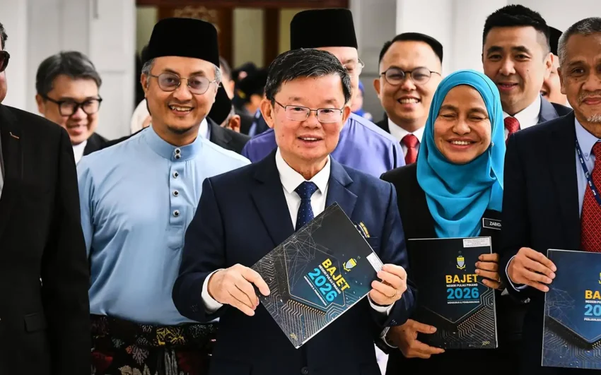 Ketua Menteri Pulau Pinang Chow Kon Yeow tunjuk naskhah belanjawan negeri 2026 di DUN hari ini. (Gambar Johnshen Lee)