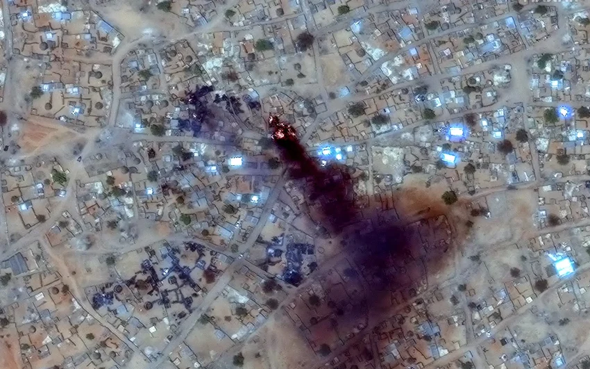 A satellite image showing fire and smoke at Zamzam camp near the besieged Sudanese city of El-Fasher. (Maxar Technologies/AFP pic)