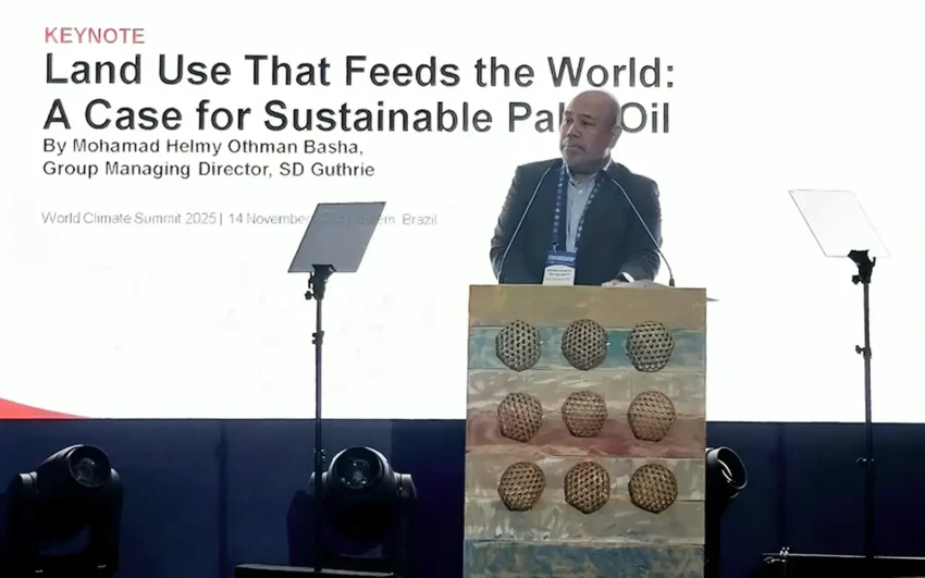 SD Guthrie group managing director Helmy Othman Basha delivering his keynote speech at the World Climate Summit 2025 in Belem, Brazil.