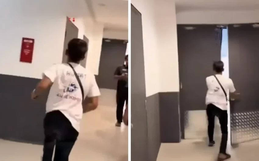 Tangkap layar video tular menunjukkan suspek melarikan diri selepas disyaki merakam video seorang wanita di dalam tandas di sebuah sebuah pusat beli-belah di Kuala Terengganu.