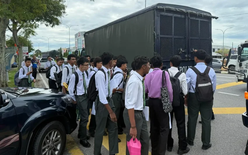 The students were moved with the aid of several police lorries from the Kubang Pasu police headquarters.