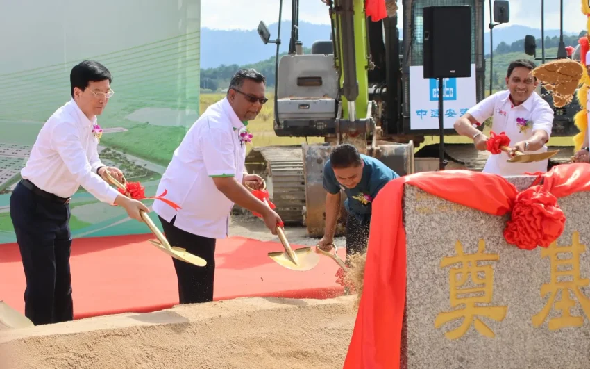 Kedah executive council member Haim Hilman Abdullah (second from left) took part in the recent laying of the Kedah Rubber City project’s foundation stone, which had Chinese inscriptions. (Facebook pic)