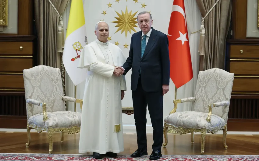 Pope Leo XIV meets Turkish President Recep Tayyip Erdogan during his first trip outside Italy as pontiff. (Turkish Presidential Press Office/EPA Images pic)
