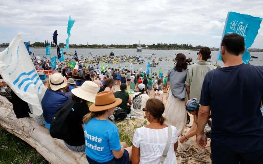 Several activists engaged in “unsafe practices” on the water during the protests, New South Wales state police said, warning that they had a “zero-tolerance” approach to threats to public safety or the safe passage of vessels.