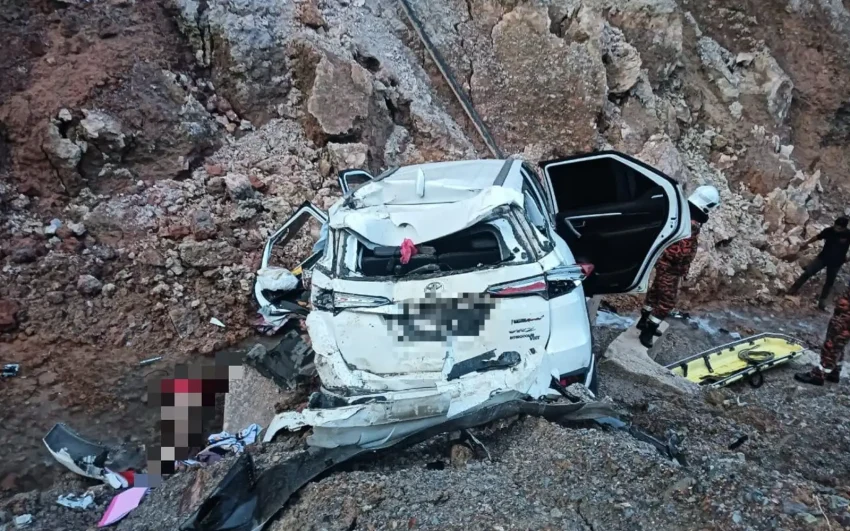 “Polis menerima panggilan daripada orang awam yang memaklumkan terdapat SUV jenis Toyota Fortuner terbabas lalu terjatuh ke dalam gaung sedalam lebih 60m.
