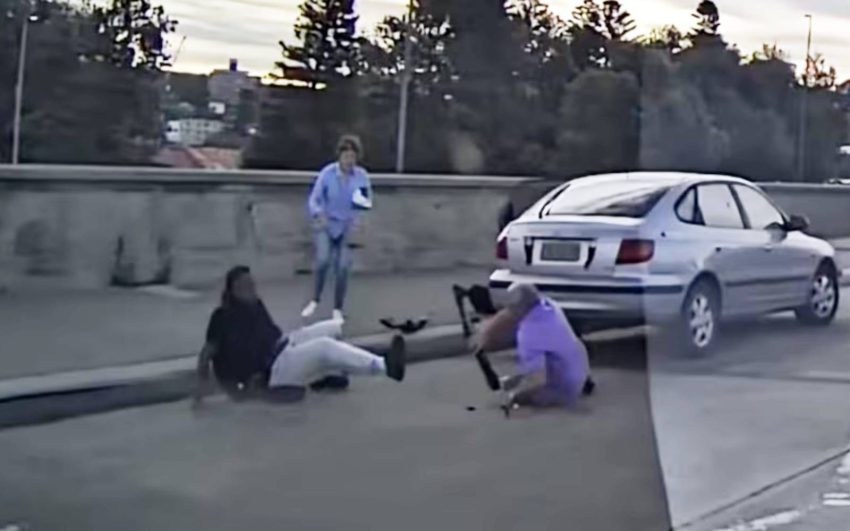 Dashcam footage showed retired mechanic Boris Gurman, 69, knocking the elder attacker to the ground as he tries to rip away his long-barrelled gun.