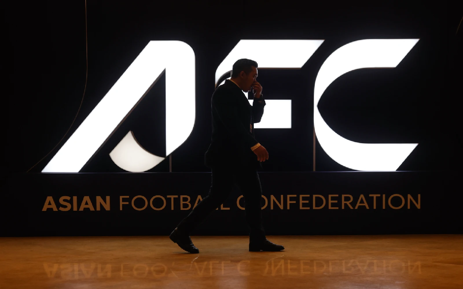 A man walks past the Asian Football Confederation logo. Mohun Bagan will also be excluded from the next Asian competition they qualify for, up to the 2027–28 season. (EPA Images pic)