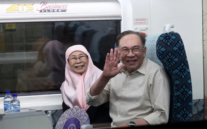 Beliau turut ditemani isteri, Dr Wan Azizah Ismail, dan diiringi Ketua Pegawai Operasi Keretapi Tanah Melayu Berhad (KTMB) Afzar Zakariya.