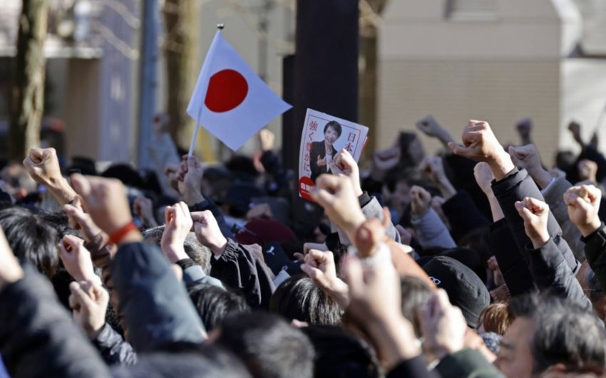 Supporters cheer at an election campaign rally with Japanese Prime Minister and ruling LDP leader Sanae Takaichi in Urawa. (EPA Images pic)