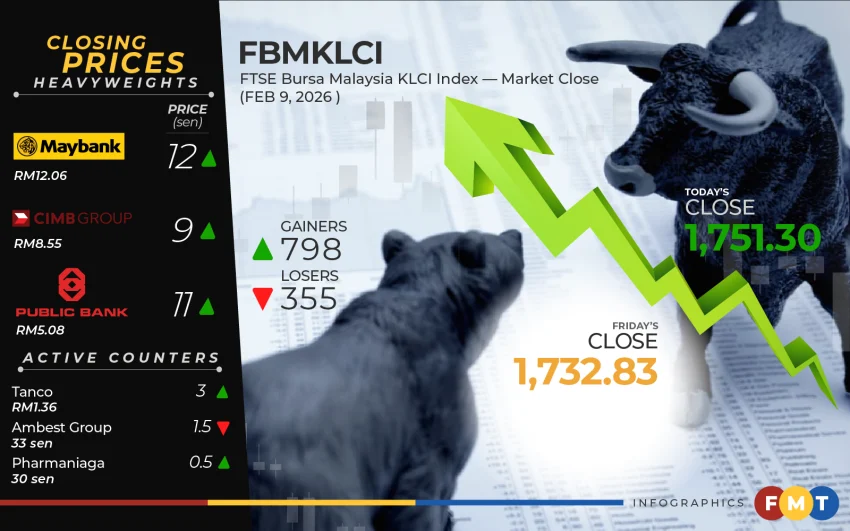 “Risk appetite also firmed across the broader market, with the FBM Small Cap Index advancing 0.8%, signalling improved participation beyond index heavyweights. Technology stocks outperformed, mirroring overnight strength on Wall Street where improved risk sentiment and resilient earnings expectations continued to support growth and tech-heavy segments, providing a positive regional sentiment spillover,” he told Bernama.