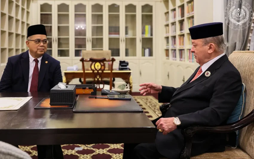 Yang di-Pertuan Agong Sultan Ibrahim berkenan menerima mengadap Menteri Perpaduan Negara, Aaron Ago Dagang di Istana Negara pada hari ini. (Gambar Facebook Sultan Ibrahim)