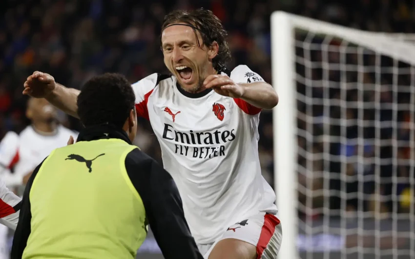 The 40-year-old midfielder Luke Modric slid the ball to Samuele Ricci on the penalty spot and scampered after his pass. The falling Ricci scuffed a pass to the surging Modric, who lifted the ball into the goal.