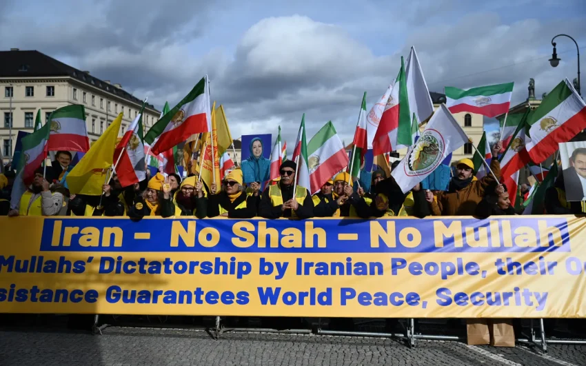 The protesters rallied on Munich’s Theresienwiese fairgrounds, denouncing the leadership of Iran’s Islamic Republic following the deadly repression of nationwide protests in January.