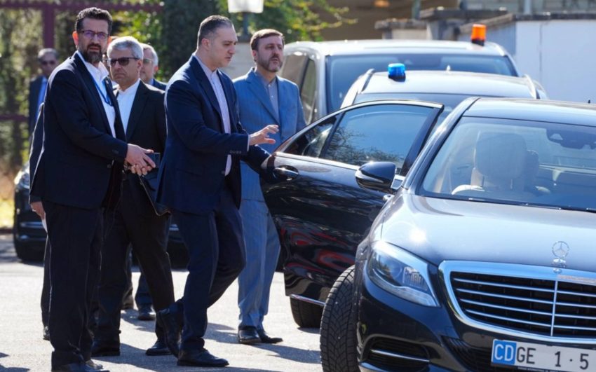 Members of the Iranian delegation depart the Omani ambassador’s residence following nuclear negotiations with the US in Geneva. (EPA Images pic)