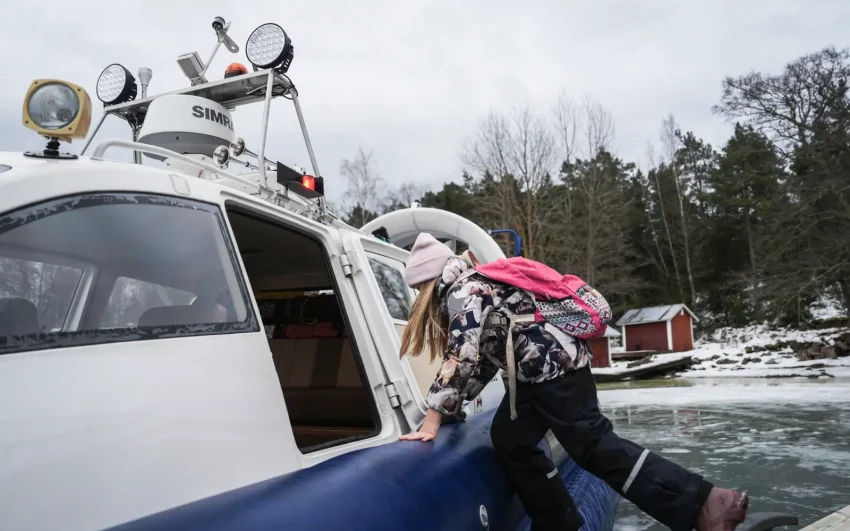 In Finland, kids take hovercraft to school over frozen Baltic Sea