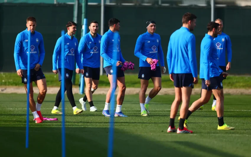 Atalanta’s players attend a training session at the Bortolotti Training Center in Zingonia, Italy. (EPA Images pic)