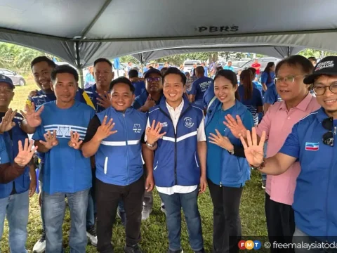 Presiden PBRS, Arthur Joseph Kurup (empat dari kanan) bersama Rushdy Raphael dan seluruh kepimpinan Pemuda PBS Sook yang keluar parti…