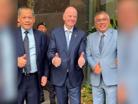 Suspended FAM general-secretary Noor Azman Rahman (right), seen with FAM honorary president Hamidin Amin and Fifa president Gianni Infantino. (gianni_infantino…