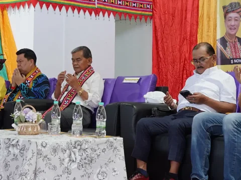 Abdul Kassim Razali (dua dari kiri), calon GRS untuk Karambunai Arshad Idris (tengah) dan Naib Presiden PRBSS Jumat Idris (dua…