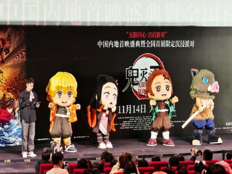 Character mascots from the film “Demon Slayer: Kimetsu No Yaiba – Infinity Castle: Part 1” at a recent premiere gala…