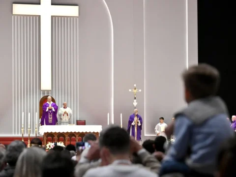 Pope Leo XIV celebrates a holy mass in the Volkswagen Arena in Istanbul with 4,000 or so worshippers in attendance….