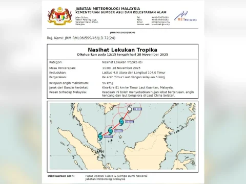 Kenyataan dan grafik sistem cuaca lekukan tropika yang dikeluarkan MetMalaysia hari ini. (Gambar MetMalaysia) PETALING JAYA: Jabatan Meteorologi Malaysia (MetMalaysia)…
