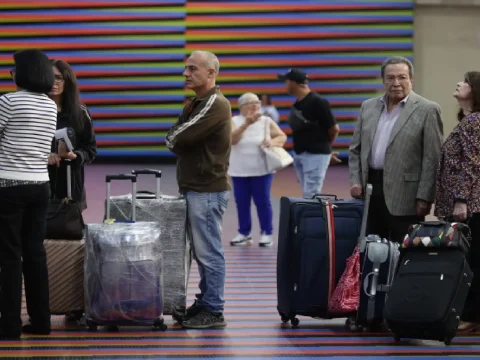Passengers queue at Simon Bolivar International Airport in Maiquetia, near Caracas. Several international airlines suspended flights following a safety warning…