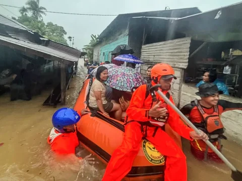 Rescuers on a rubber boat evacuating residents from their flooded houses in North Sumatra province, Indonesia. (EPA Images pic) JAKARTA:…