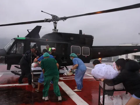 Patients are evacuated by helicopter from Hat Yai Hospital as heavy rains flood nine southern provinces, affecting over 2.7 million…