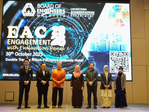 Pengerusi Majlis Akreditasi Kejuruteraan Ahmad Sabirin Arshad (tiga kiri) dalam perasmian sesi libat urus bersama panel penilai 2025 di Putrajaya….