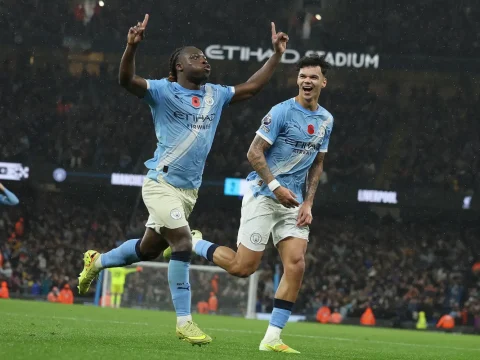 Manchester City’s Jeremy Doku celebrates after scoring the third goal during the match against Liverpool. (EPA Images pic) MANCHESTER: Manchester…