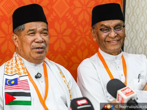 Amanah vice-president Dzulkefly Ahmad (right) and party president Mohamad Sabu at the national convention in Shah Alam on Sunday. PETALING…