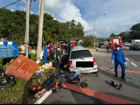 Keadaan lokasi kemalangan di KM4.4 Jalan Machang-Pasir Puteh dekat Stesen Minyak Petronas Sungai Emas, Machang, semalam. (Gambar PDRM) PETALING JAYA:…