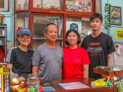 (L-R) Christine Yeow, her father Steven Yeow, her mother Bong Kim Yen and her brother Alex Yeow are the third…