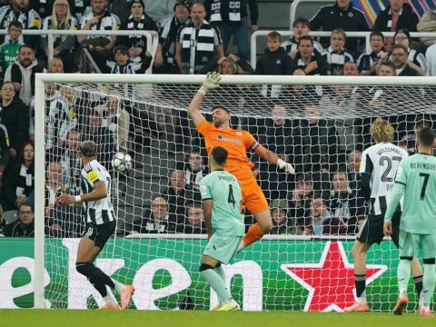 Newcastle United’s Joelinton (left) scores with a header for the second goal against Athletic Bilbao at St James’ Park. (AP…