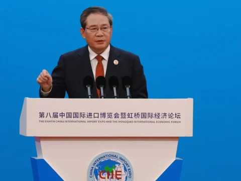 Chinese Premier Li Qiang delivers the opening speech at the 7th China International Import Expo in Shanghai. (EPA Images pic)…