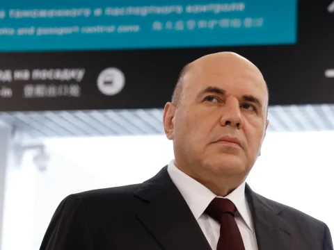 epa12250715 Russian Prime Minister Mikhail Mishustin visits the Kani-Kurgan crossing point on the Russia-China border near Blagoveshchensk, Russia, 21 July…