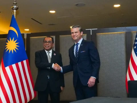 Menteri Pertahanan Khaled Nordin dan Setiausaha Perang AS Pete Hegseth di majlis MoU memperkukuh kerjasama keselamatan serta keupayaan ketenteraan kedua-dua…