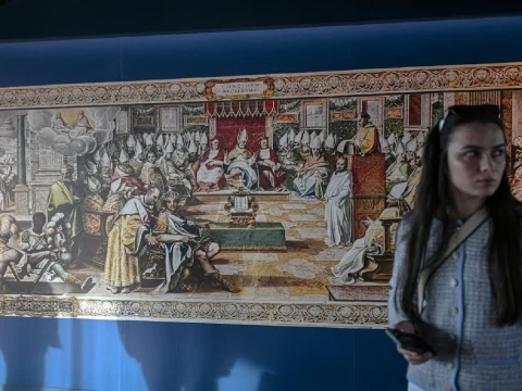 A visitor passes a reproduction of the Concilium Nicaeum (the First Council of bishops in Nicaea) at the sunken Byzantine…