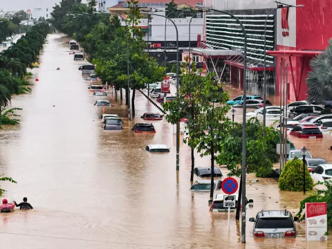People (left) wade through floodwaters near inundated vehicles in Nha Trang. (AFP pic) NHA TRANG: Rescuers plucked stranded people from…