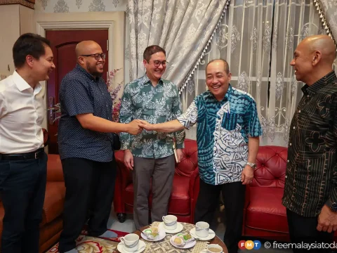 Ketua Menteri sementara Hajiji Noor bertemu Presiden SLS Nazim Maduarin (dua dari kiri) dan bekas presiden Roger Chin (kiri) termasuk…