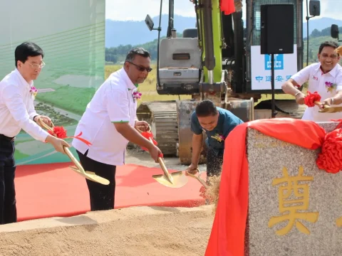 Kedah executive council member Haim Hilman Abdullah (second from left) took part in the recent laying of the Kedah Rubber…